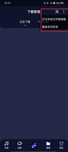 4、【管理】界面所展示的均为已下载至本地的音乐。若要删除音乐,既可以全选,也能够有选择性地删除音频。