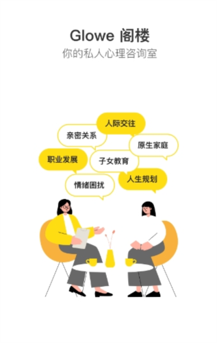 Glowe阁楼是深圳谨启科技有限公司开发的一款在线心理咨询手机软件。软件内入驻了大量心理咨询师,用户能获得私密、优质且安全的心理咨询服务。这款软件没有高昂费用,也没有繁琐的咨询流程,来访者随时随地都能进入私人心理咨询室,享受简单、舒适又高质量的专业咨询服务。要是发现咨询师不适合自己,用户有权更换,且无需额外付费。