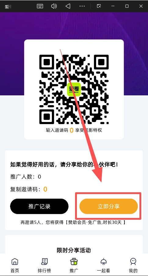 若想免费获取特权,可立即前往推广页面,把你的邀请码分享给更多朋友。这是免费获得等权益的主要途径。