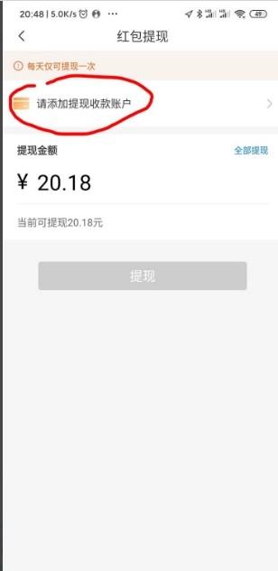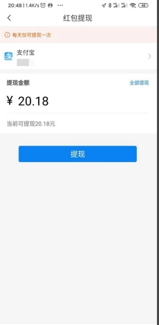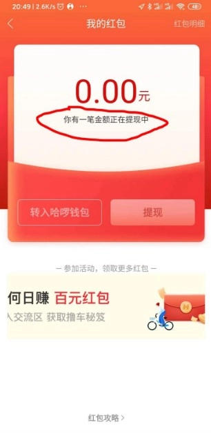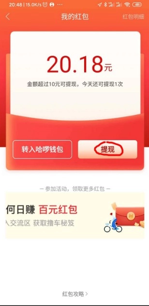 点击进入红包页面,进行提现操作。