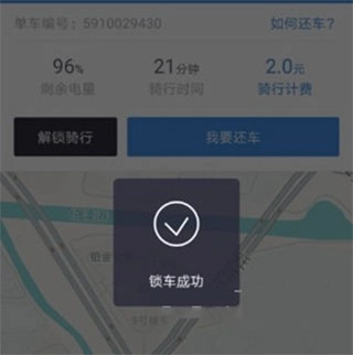 当我们骑助力车抵达目的地后,在软件界面上方找到【我要换车】按钮,点击该按钮就能完成锁车操作。