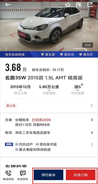 这里能查看车辆的各类详细信息,要是觉得合适,可直接预约看车或在线订购;要是不满意,直接更换就行。