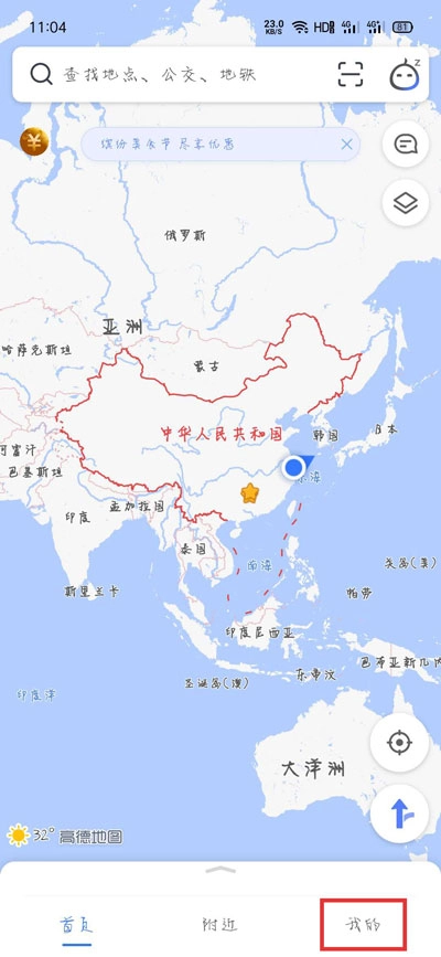 打开手机里的高德地图应用,在界面下方的功能栏里找到并切换到【我的】页面。