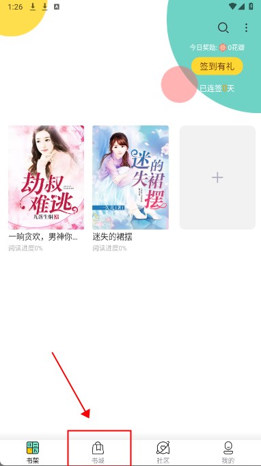 打开追书坊,进入应用后,先选择自己的阅读喜好,接着点击书城板块。