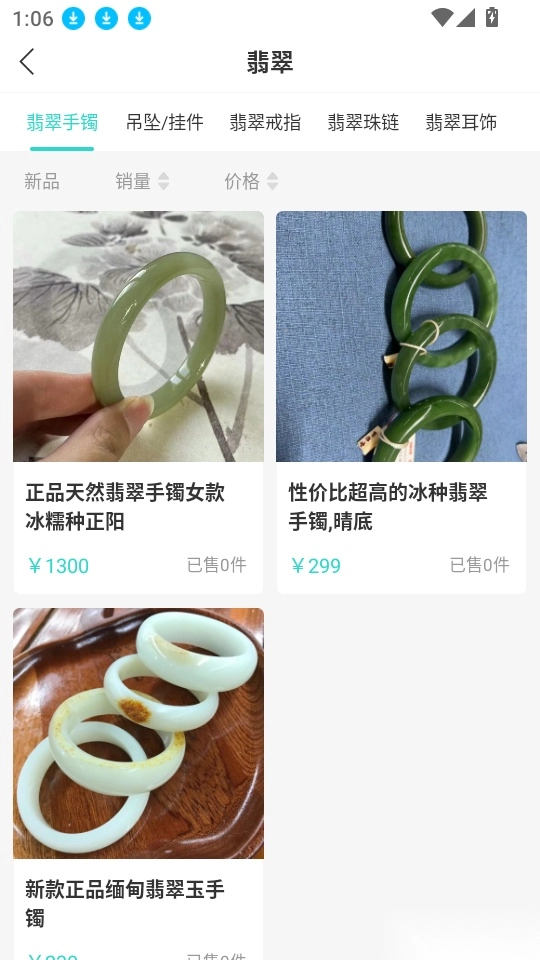 之后就能看到各式各样的翡翠手镯商品,挑选出心仪的那一款并点击,即可进入下一步操作。