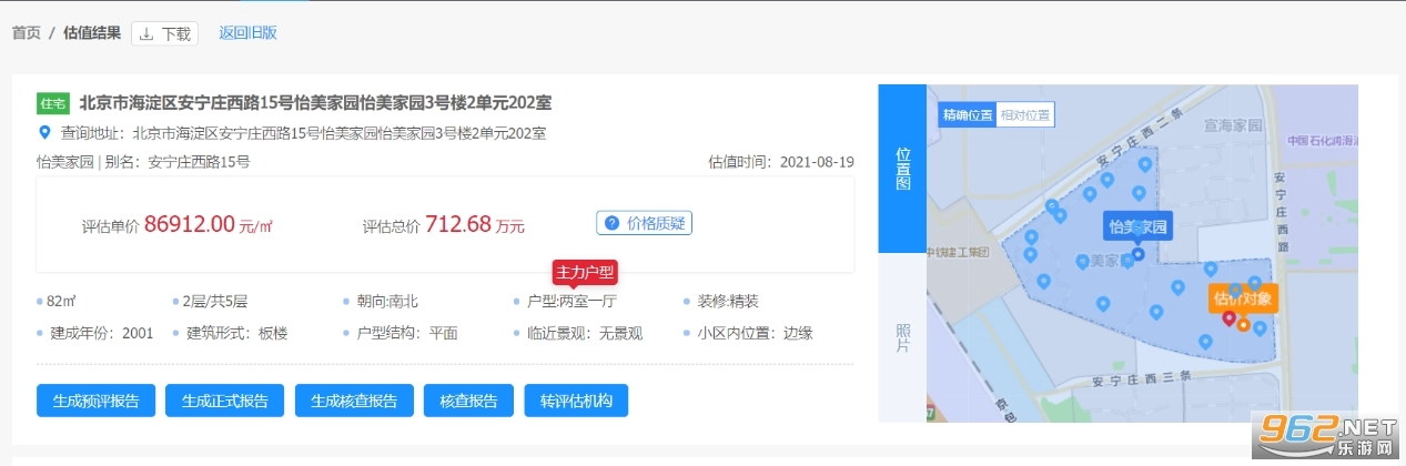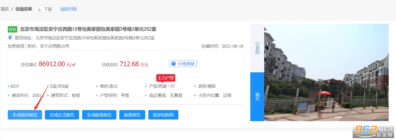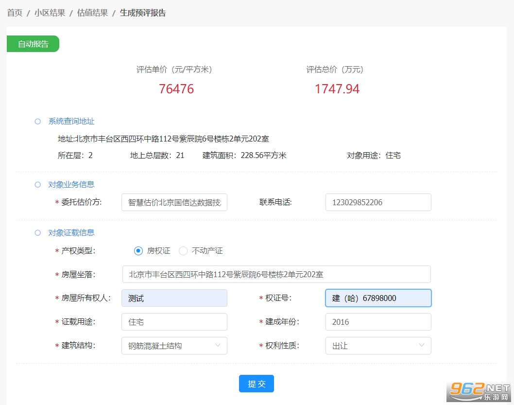 在自动估值结果页面,点击“生成预评报告”按钮,填写对应的任务信息后,系统会自动生成预评报告。