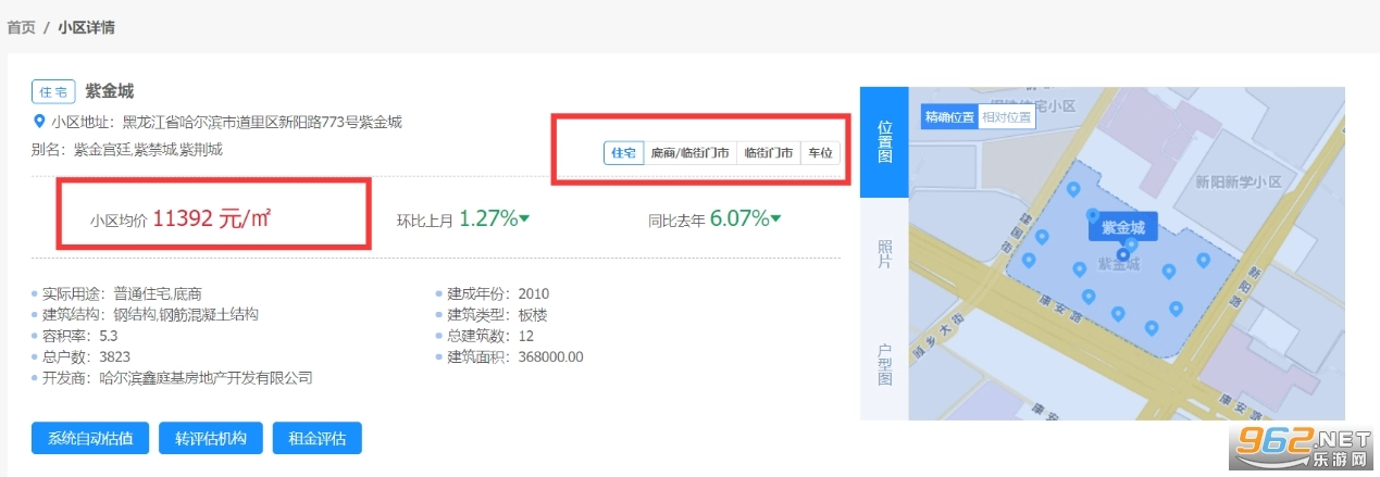 在首页估值栏填写完整的产证地址,系统会自动进行解析匹配,点击即可进入户级详情页。