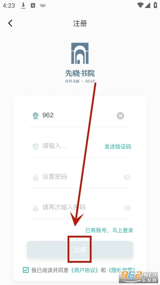 填写相关信息,勾选隐私协议后,点击【注册】按钮就能完成注册。