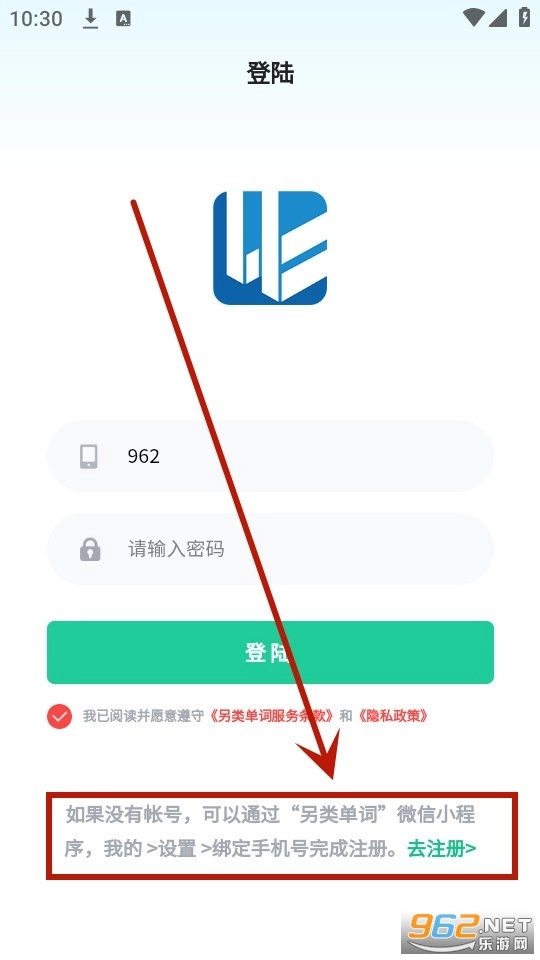 按照提示打开另类单词小程序,完成手机号绑定以注册账号