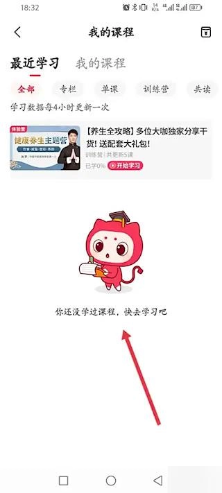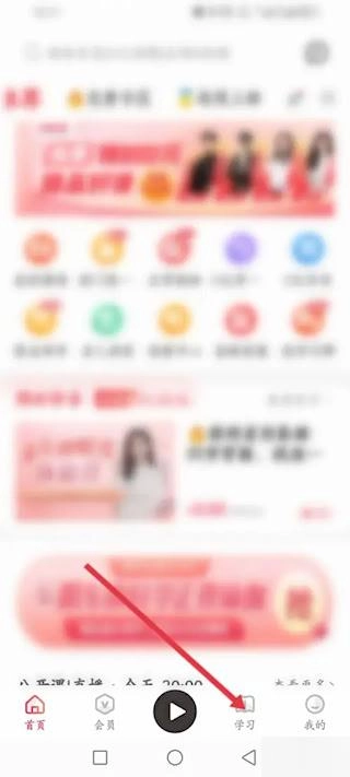跳转至学习主页面,再次触碰下方的【课程】分类。
