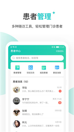 医生能够对线上咨询与线下就诊的患者实施分组管理,借助患教资料、问诊表等专业工具,高效地随访跟踪诊后患者的病情,从而助力医生开展诊后管理工作。