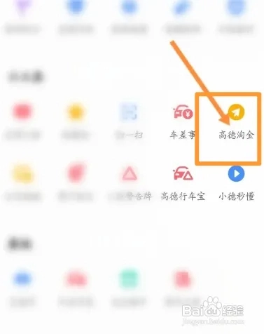 打开手机里的高德地图应用,第一步先点击界面上的“高德淘金”选项。