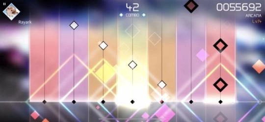 当每个音符在节点击打时,都会呈现出炫彩的特效,特效越酷炫,意味着得分越高。