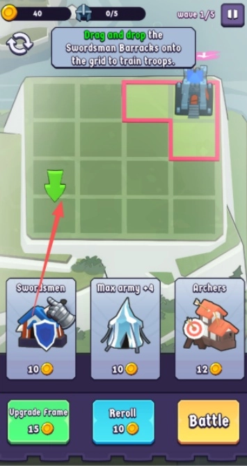 按照提示把剑士营房拖到网格上训练部队。通过不断训练各类单位来增强整体战斗力。