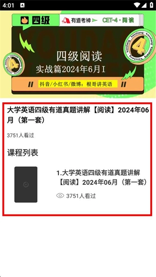 在阅读真题课程的选择页面,挑选你想学习的课程,就能开始该阅读真题的学习了。