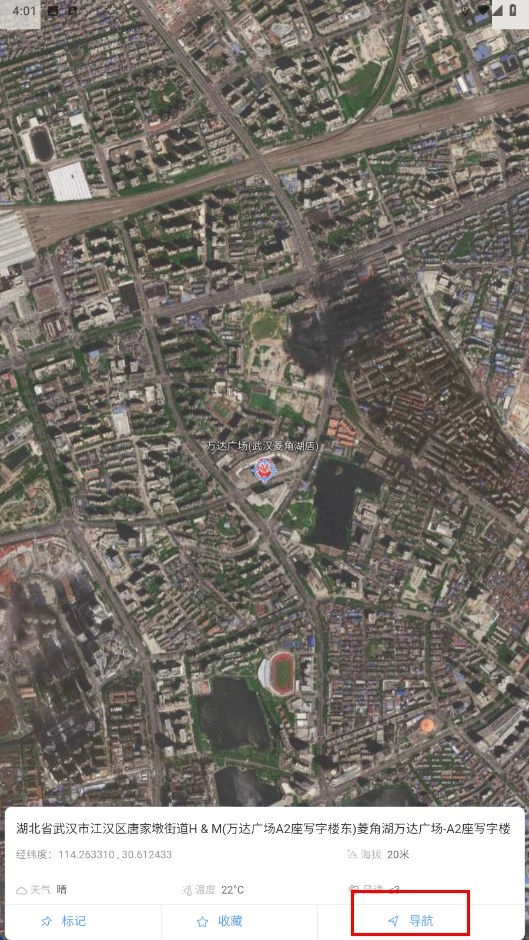 在卫星地图页面,点击【导航功能按钮】,就能选择地图应用来进行导航。