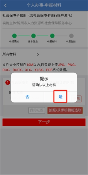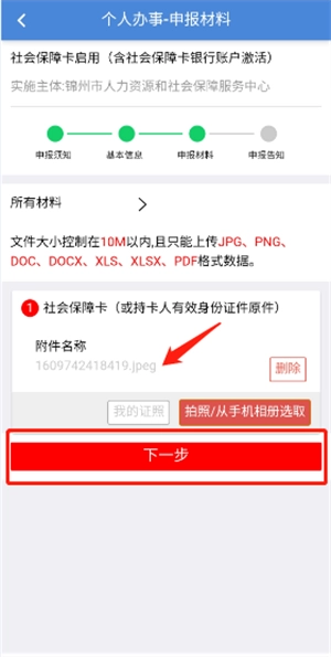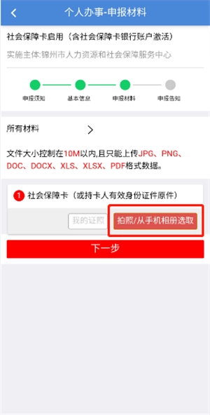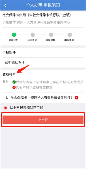 进入页面后,按照【收取材料】里的要求备齐相关材料,再点击【下一步】按钮。