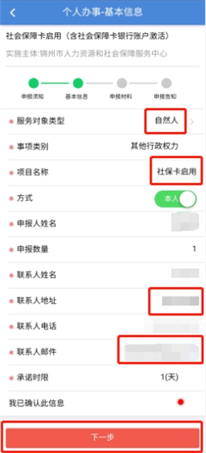以【个人办事】里的【社会保障卡启用】为例,我们可以按顺序开展以下操作: