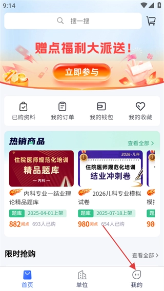 在医人云首页,点击底部导航栏的“我的”选项,即可进入个人中心页面。