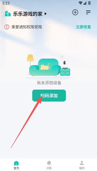 完成注册登录步骤后,进入首页并点击“扫描添加”,即可进行手机端的连接操作。