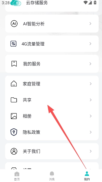 点击觅睿用户界面,找到共享功能选项。