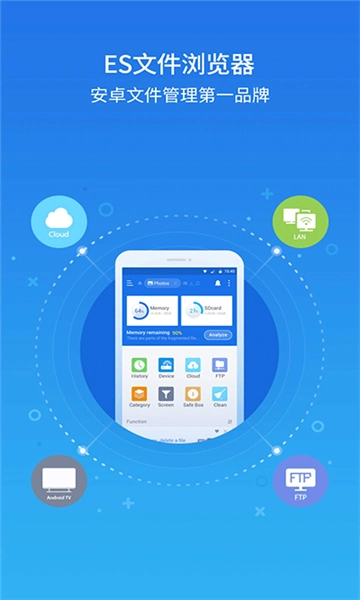 ES文件浏览器安卓版是一款具备安卓设备本地管理、局域网共享、远程FTP、蓝牙设备连接及云端储存等功能的手机软件。