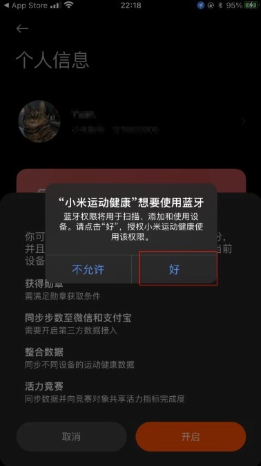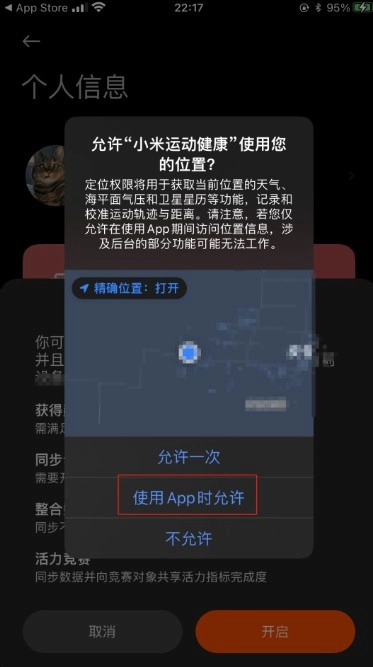 登录成功后,会弹出一系列弹窗,请按照下面图片中显示的选项进行配置。注意:位置信息是手环连接的关键,务必开启。