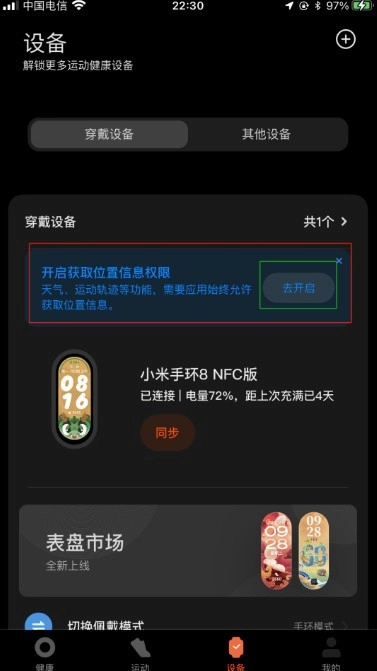 注:如果没有蓝色提示,打开手机设置,往下面一直滑,找到小米运动健康,进入即可。