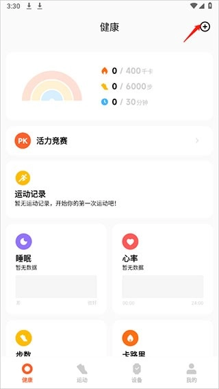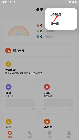 点击右上角的加号按钮,点击后选择添加设备选项,然后连接你的手环。