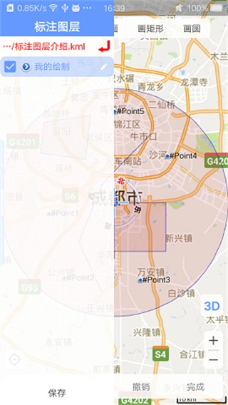 下图展示了kml文件中的图元内容,该层级为Folder级,主要用于存储Placemark和其他Folder;针对不同类型的Placemark,还提供了对应的集中操作选项。