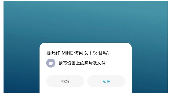 开启MiNE如果没有存储权限则会弹出授权请求