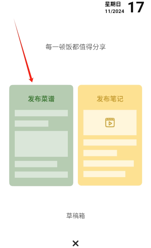 然后在弹出的菜单选项里找到“发布菜谱”这一项并点击它。