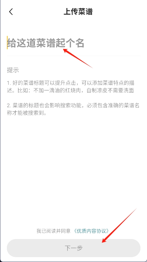 在指定文本框中输入主界菜谱的标题,接着点击“下一步”按钮。