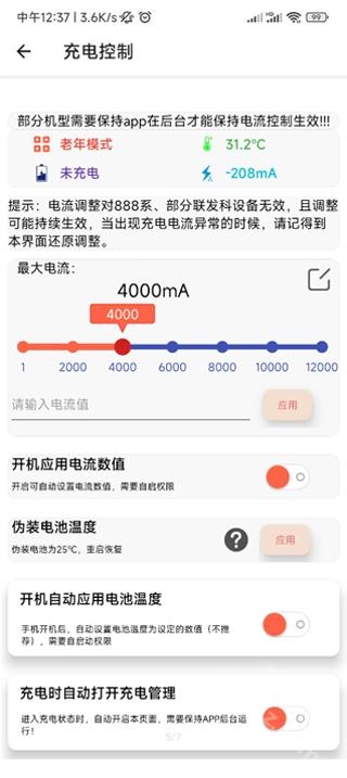 充电控制功能,能够对手机充电过程中的最大电流进行调控,也可以调用其他电池相关功能。
