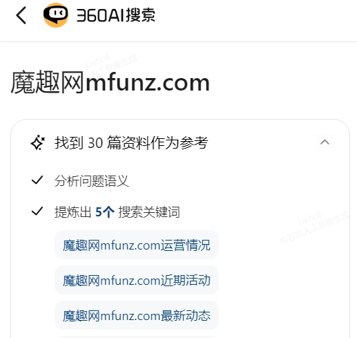 接下来,360ai搜索会把问题拆解成多组关键词,这样就能在搜索引擎里开展检索工作了。