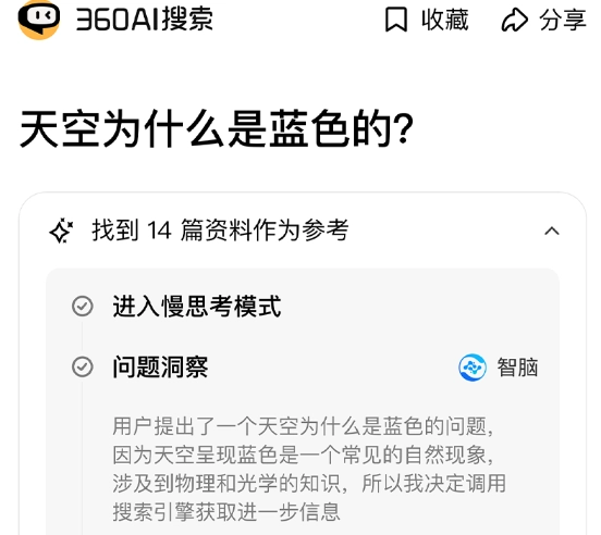 当用户在360AI搜索里输入问题时,360智脑大模型就会对该问题展开分析。