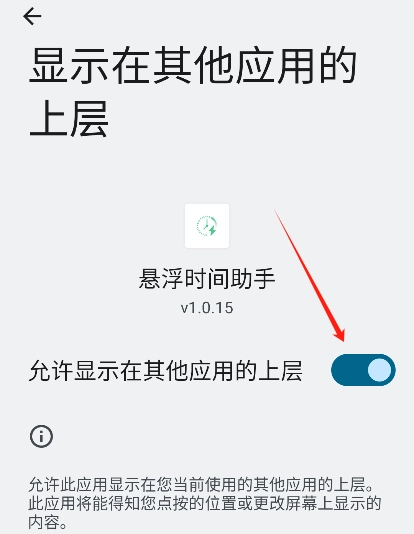 随即打开应用详情页面,然后在手机设置里找到“显示在其他应用的上层”这一权限并将其开启。