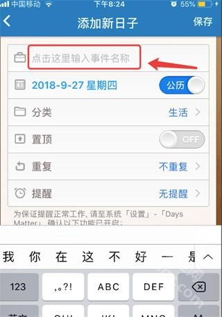 进入添加页面后,按照页面提示填写事件名称、日期等相关信息,还能依据自身需求进行个性化设置。