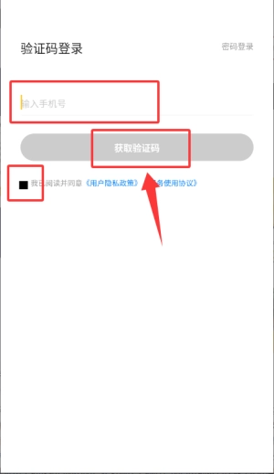 验证码登录需输入手机号并获取验证码。