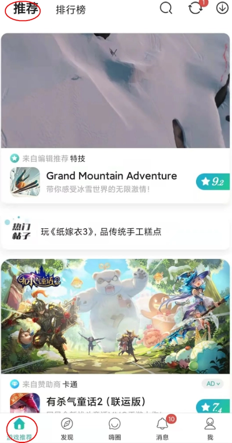 打开软件,映入眼帘的是游戏推荐板块,里面包含推荐内容和排行榜。要是不知道玩什么游戏,不妨来这里逛一逛,肯定会有收获!