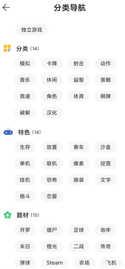针对不同类型的用户,可以直接通过选择游戏种类进行筛选,从而找到优质游戏。