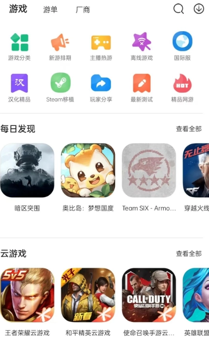 在“发现”页面里,平台把游戏划分成了“游戏”“游单”和“厂商”这几个板块,每个板块的分类都做得相当细致。这里面不仅能找到不少汉化游戏,还能看到一些游戏。