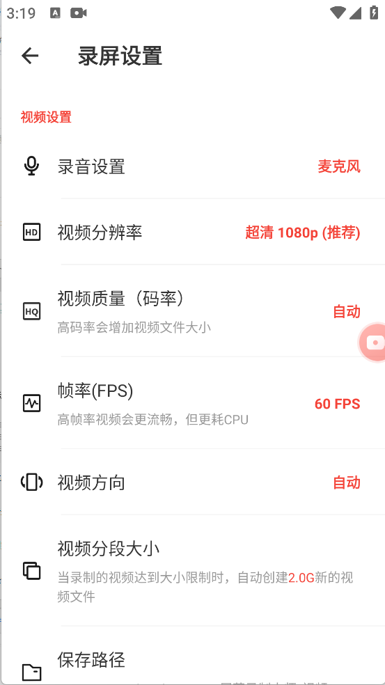 程序默认开启录制时悬浮窗自动隐藏的功能,以此保证录制画面清晰且不受干扰。若有需要,你可以在设置菜单里根据自身需求对该设置进行调整。