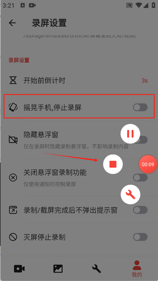 结束录制:录制完成后,你可以通过摇一摇手机,或者点击悬浮窗上的停止按钮来结束录制,录制好的视频会自动保存到手机的文件夹里。