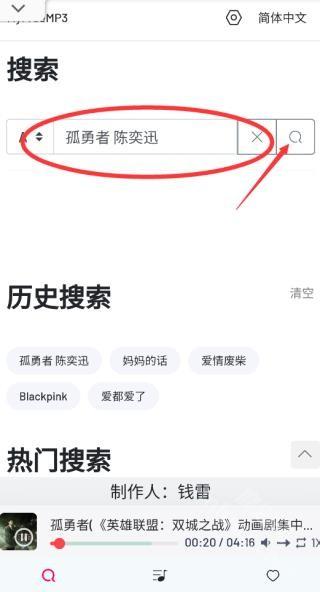 打开myfreemp3软件,进入主页面后,在搜索框中输入你想找的音乐,接着点击搜索按钮。