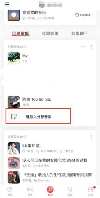 在创建歌单板块下拉,找到导入外部音乐选项