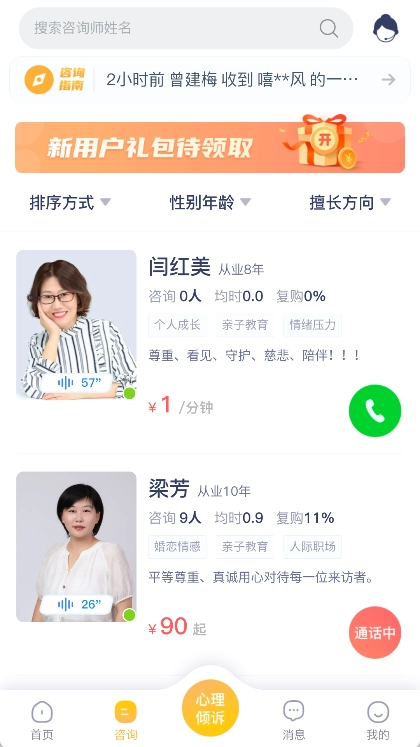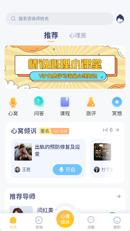 心理咨询:可以在平台上预约心理咨询师,借助语音、电话、视频或者文字等形式开展咨询。