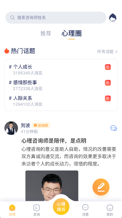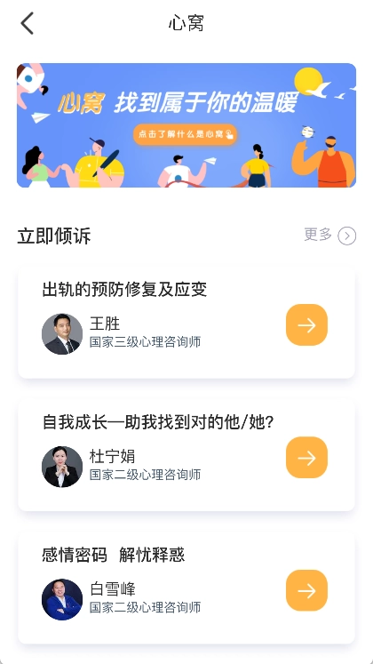 - 提供在线心理咨询服务,让你能随时随地获得专业心理咨询师的支持与帮助。