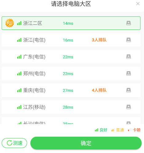 选择一个区域,点击确定按钮启动游戏,连接至弘电脑的云电脑桌面。