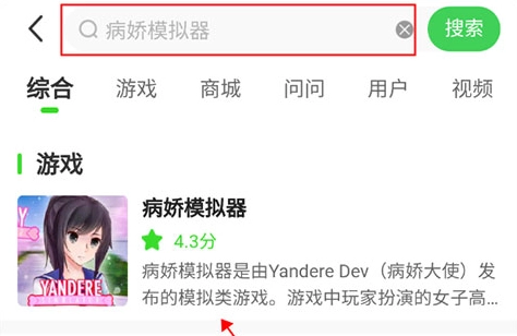 打开弘电脑,在搜索栏输入“病娇模拟器”,就能找到这款游戏了。